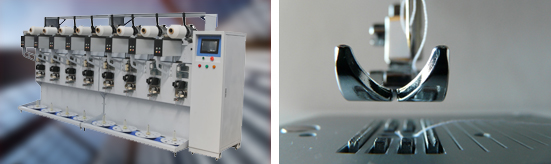 該設(shè)備結(jié)構(gòu)簡潔、堅固、造型輕靈、美觀大方,其卷繞速度高達1000m/min,采用精準的伺服控制系統(tǒng),主動送紗、在線張力控制,達到送紗與卷繞的精準配合,設(shè)定卷繞交叉角,將導(dǎo)絲排線與卷繞任意調(diào)整速比, 以保證成筒的各種工藝要求。